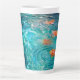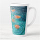 The image shows a serene scene of orange flowers floating on the surface of clear, turquoise water. Concentric ripples emanate from each flower, creating a dynamic pattern on the water's surface. The water reflects light, creating a shimmering effect with varying shades of blue and green. The overall mood is peaceful and tranquil, evoking a sense of calm and natural beauty.