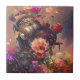 Flowers fuchsia yellow pink steampunk digital art ceramic tile