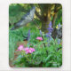 Pink and purple geraniums and plants displayed on a quality Mousepad.