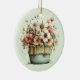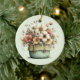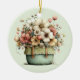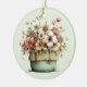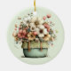 Ornament with a whimsical stylish pot of flowers. Green, pink and cream colours. Set in a green pot with a plaid cloth. Shabby vintage vibe.