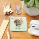 Keychain with a whimsical stylish pot of flowers. Green, pink and cream colours. Set in a green pot with a plaid cloth. Shabby vintage vibe.