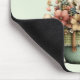 Mouse pad with a whimsical stylish pot of flowers. Green, pink and cream colours. Set in a green pot with a plaid cloth. Shabby vintage vibe.