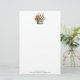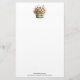 Stationery paper with a whimsical stylish pot of flowers. Green, pink and cream colours. Set in a green pot with a plaid cloth. Shabby vintage vibe.