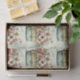 Tissue paper with a whimsical stylish pot of flowers. Green, pink and cream colors. Set in a green pot with a plaid cloth. Shabby vintage vibe.
