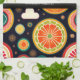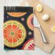 Flowers in Melon Red Psychedelic Pattern Tea Towel