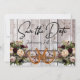 This design has a rustic elegance, keeping it simple theme. barnwood background with burgundy ribbon, lace, knotted horseshoes and wildflower bouquets with placeholders for the date on the front. Placeholder for a photo of the couple is on the back of the card with names, and "Gettin' Hitched" script on matching ribbon background. Designed to coordinate with "Gettin' Hitched - Horseshoes, Ribbon & Lace" Collection. To change details, click «Personalize». To move the text or change the text size, font, or color click «Click to customize further»