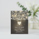 rustic country save the date postcard with mason jar full of yellow blooming flowers, handwritten leaves, cute tree branches and glowing love hearts.