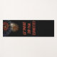 A black yoga mat with red-orange text that reads: "Celebrate, you are doing it!", on a photograph of colourful fireworks.