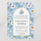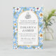 Flowers Pattern Blue Islamic Aqiqa Aqeeqa Baby Invitation
