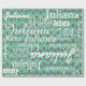 A fun and graphic typography design with a floral pattern. Repeated name in different font styles and sizes and colour flowers