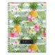 Flowers & Pineapple Teal Stripes | Add Your Name Notebook