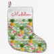 Flowers & Pineapple Teal Stripes | Add Your Name Small Christmas Stocking