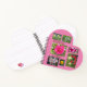 A Pink Heart shape Spiral Notebook, with Pictures of differen’t Flowers , and the Text “Special Notes “on the front and Back of it .
