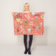 Pretty, artistic, fun, and cheery best describes this flower design fleece blanket. A coral background and lots of interesting whimsical flowers of light blue, green, chocolate brown, and green.