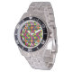 This men's watch has a Black History design of flowers and rows made from triangles and rectangles.