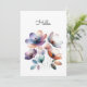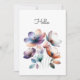 A watercolor illustration of pretty flowers in teal, peach, purple, blue. This botanical print is perfect for a simple Hello greeting, but you can change the text to your preferred greeting. AI assisted graphic purchased with commercial use. Artwork: DreamCafeArt
