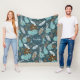flowery feathery teal turquoise brown boho fleece blanket