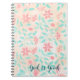 Flowery notebook with pinky-peachy flowers and teal leaves.