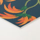 Seamless pattern of vibrant orange flowers with green stems on a dark blue background. The design is dynamic and lively, with a sense of flow.