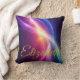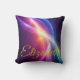 Featuring flowing waves of radiant colour—blending purples, pinks, blues, and golden light—this design creates a mesmerising sense of motion against a deep, cosmic-inspired background. The elegant gold script name adds a personal and luxurious touch, making this pillow both eye-catching and meaningful.