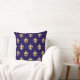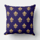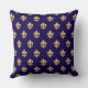 This blue and gold fleur de lis design pillow has small shapes on the backside and medium size shapes on the front side.