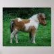 This little pony is so gosh darn cute he looks like a living doll! Multicolored in white and brown markings. He's a dartmoor pony and can be seen standing in bright green grass with some trees and bushes in the background. His hair looks so soft and fluffy and he has a cute little grey tail. Pony fans will surely love this.