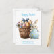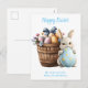 Fluffy Bunny Watercolor Plants Eggs Easter Holiday Postcard