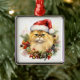 FLUFFY CHRISTMAS HOLIDAY CAT FACE METAL ORNAMENT