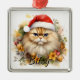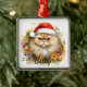 FLUFFY CHRISTMAS HOLIDAY CAT FACE METAL ORNAMENT