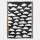 A throw blanket with an original hand drawn design made up of stylised cloud motifs. The background colour can also be customised.