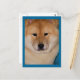 photo of a red fluffy dog face, this cute postcard is ready for you to write your personal message on the back right now.