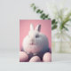 An adorable fluffy white rabbit with a nest and eggs on a pastel pink background AI generated photography