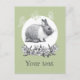 Fluffy hare with butterflies on green background postcard