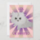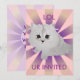 An adorable fluffy white kitten on a playful pink and purple background. This cute invitation is perfect for any occasion! Original art © Lydia "PrairieGhost" Jacobs 2010
