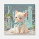 Fluffy Kitten with Blue Bow at Pastry Shop Magnet