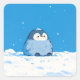 Fluffy Penguin Sitting in Winter Snow Square Sticker