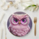 Fluffy Pink Owl with Hearts Paper Plate