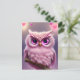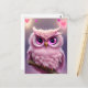 Fluffy Pink Owl with Hearts Postcard