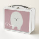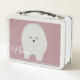 Fluffy Pomeranian Dog custom name lunchbox. Easy to add custom background colour.