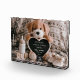 Celebrate the exciting news of your pregnancy with this adorable pregnancy announcement featuring a cute, fluffy puppy holding a heart-shaped letter board. Perfect for a baby boy reveal, this charming design captures the joy and excitement of welcoming a little one into the world.