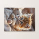 Fluffy red kitten playing with a tiny teddy bear, jigsaw puzzle
