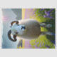 an AI portrait of a fluffy sheep /ram in a field of purple flowers