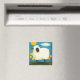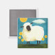 Cute magnet for animal lovers featuring a digital painting by Lisa Marie Robinson. A fluffy white sheep stands amongst yellow flowers. The sun is shining above and there is one lone cloud in the sky. Created from an original painting © Lisa Marie Robinson. All Rights Reserved
