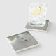 The coasters are gorgeous, a quality feel and heavy weight. They look like a precious archeological find. A rustic stone juxtaposed with a modern floral black and white print. I like the way the print goes slightly imperfect on the cut stone edges giving them a kind-of natural beauty.