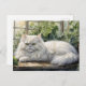Fluffy White Persian Cat in a Garden Postcard