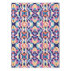 This design features a fluid, abstract pattern with a symmetrical, mirrored layout. Wavy, organic shapes interlock seamlessly, forming a bold yet harmonious composition. The colour palette blends deep purples, blues, teals, pinks, and warm yellows, creating a lively contrast. The layered effect gives a sense of movement, almost like flowing liquid or undulating fabric. The soft curves and bold colours combine to evoke a mix of retro and modern aesthetics, reminiscent of psychedelic patterns or mid-century-inspired motifs.