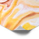 Iridescent paints swirl, creating a fluid masterpiece with golden charm.