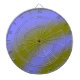 This awesome dart board features a digitally created image consisting of a series of wavy alternating blue and green blurred bands of colour that resemble a series of fluorescent bands of cloud.