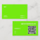A business card template with a vivid fluorescent green backdrop and white letters. A cover QR code is located on the reverse side. Add a link to your replacement in its place. Stylish and straightforward design by Alma Wad. Now, give each side a personality. It comes in packs of 100.