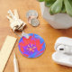 This pretty keychain features a beautiful photograph of a tulip. The photograph has been artificially coloured resulting in a riot of colour. The centre of the flower glows white-hot while the surrounding petals are a mixture of reds, blues and purples. The result is an incredible image.